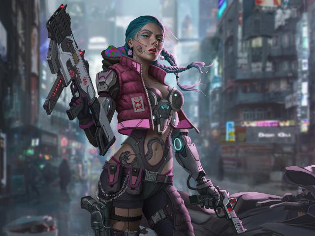 Fantasy_386Cyber cool girl with gun - hd Wallpaper