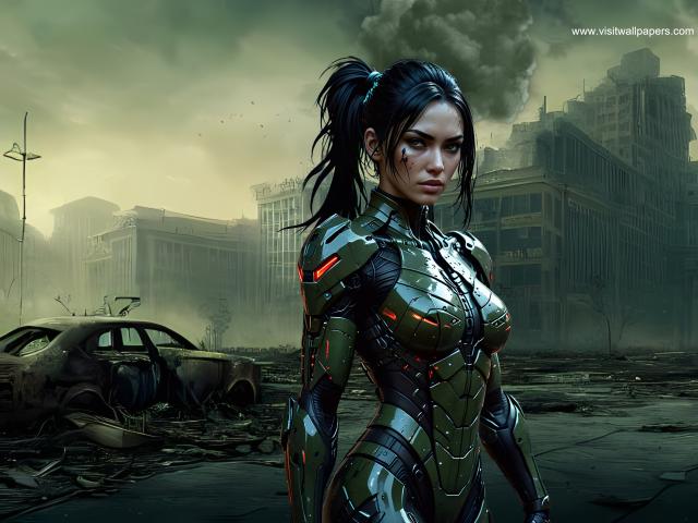 Fantasy_428Cybernetic woman on ruined apocalyptic city - Hd Wallpaper