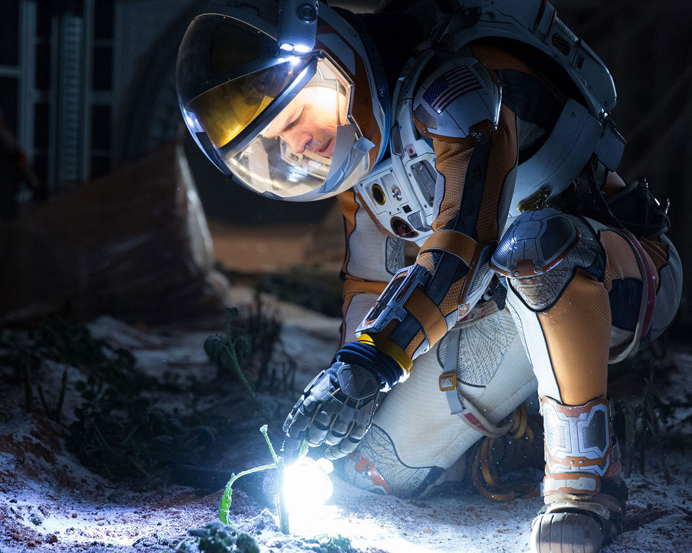 The_Martian_05 The Martian is a 2015 American science fiction film directed by Ridley Scott and starring Matt Damon. The film is based on Andy Weir's 2011 novel The Martian, which was adapted into a screenplay by Drew Goddard. Damon stars as an astronaut who is presumed Date: 10/22/2016 The Martian is a 2015 American science fiction film directed by Ridley Scott and starring Matt Damon. The film is based on Andy Weir's 2011 novel The Martian, which was adapted into a screenplay by Drew Goddard. Damon stars as an astronaut who is presumed dead and left behind on the planet Mars, and he fights to survive the situation. The film also features Jessica Chastain, Kristen Wiig, Jeff Daniels, Michael Peña, Kate Mara, Sean Bean, Sebastian Stan, Aksel Hennie, Chiwetel Ejiofor and Donald Glover in supporting roles.