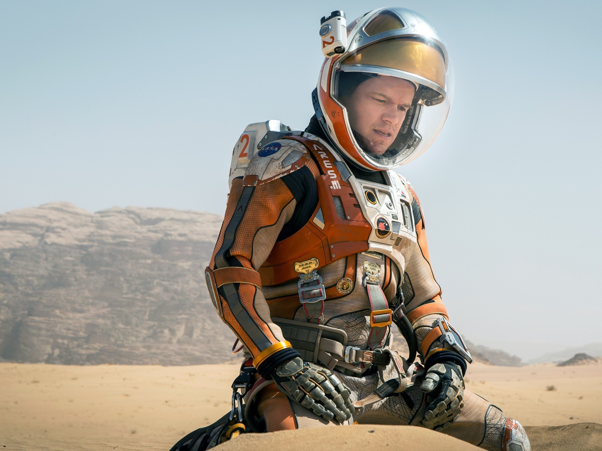 The_Martian_06 The Martian is a 2015 American science fiction film directed by Ridley Scott and starring Matt Damon. The film is based on Andy Weir's 2011 novel The Martian, which was adapted into a screenplay by Drew Goddard. Damon stars as an astronaut who is presumed Date: 10/22/2016 The Martian is a 2015 American science fiction film directed by Ridley Scott and starring Matt Damon. The film is based on Andy Weir's 2011 novel The Martian, which was adapted into a screenplay by Drew Goddard. Damon stars as an astronaut who is presumed dead and left behind on the planet Mars, and he fights to survive the situation. The film also features Jessica Chastain, Kristen Wiig, Jeff Daniels, Michael Peña, Kate Mara, Sean Bean, Sebastian Stan, Aksel Hennie, Chiwetel Ejiofor and Donald Glover in supporting roles.