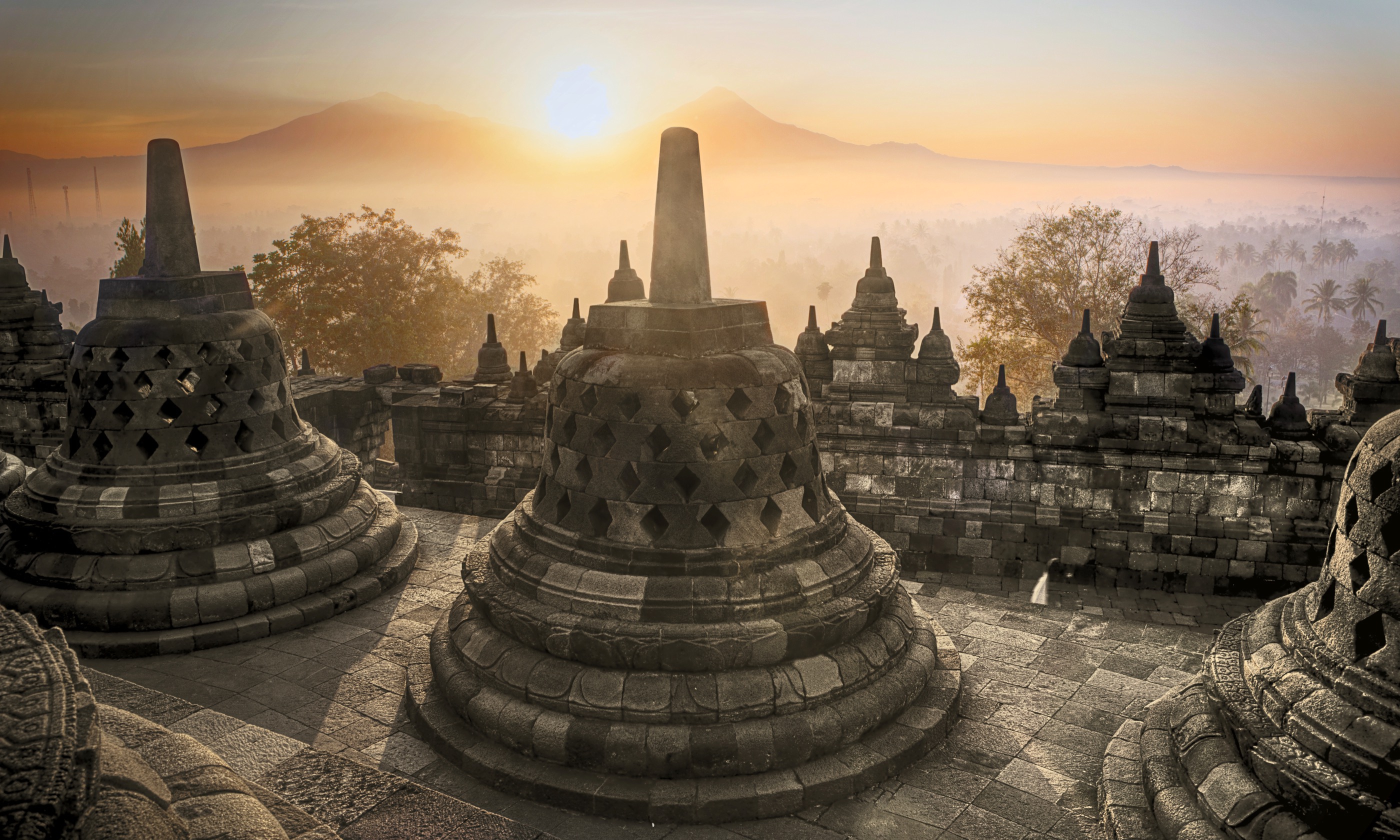 Indonesia_049 Stupas of Borobudur at sunset Wallpaper