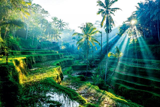 นาข้าวในหุบเขาตอนเช้า, เกาะบาหลี, อินโดนีเซีย