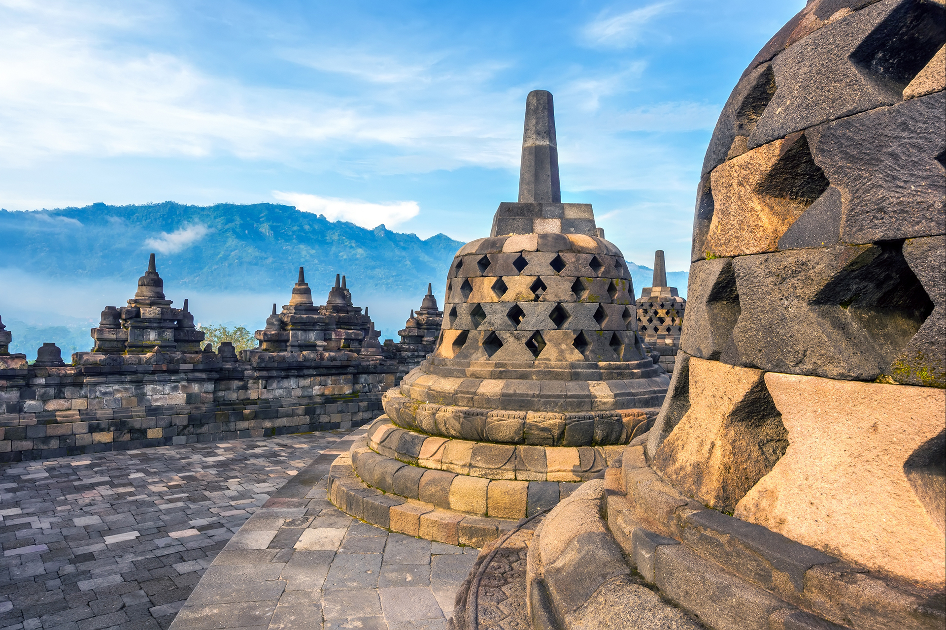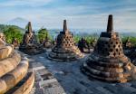 Indonesia_122 Borobudur Temple at sunrise. Yogyakarta, Java, Indonesia. Date: 4/20/2019 Borobudur Temple at sunrise. Yogyakarta, Java, Indonesia.