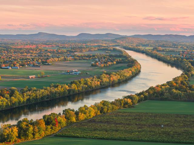 The Connecticut River as seen from South Sugarloaf Mountain in Deerfield, Massachusetts, United States