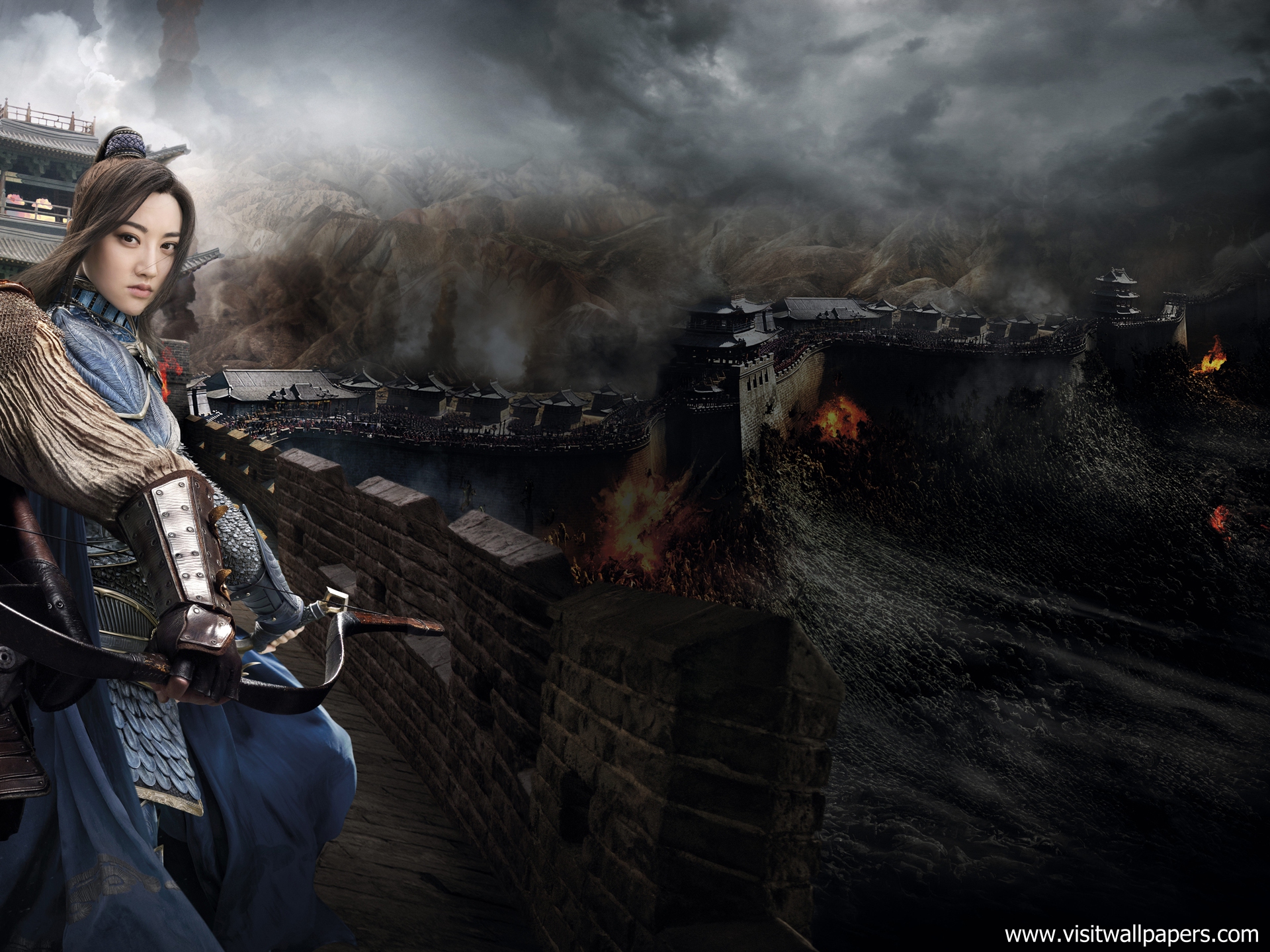 The Great Wall Movie Wallpaper The Great Wall is a American-Chinese epic historical fiction action-adventure monster film directed by Zhang Yimou and written by Tony Gilroy, Carlo Bernard, Doug Miro, Max Brooks, Edward Zwick, and Marshall Herskovitz. The film stars Matt Damon, Jing Tian, Pedro Pascal, Willem Dafoe and Andy Lau.