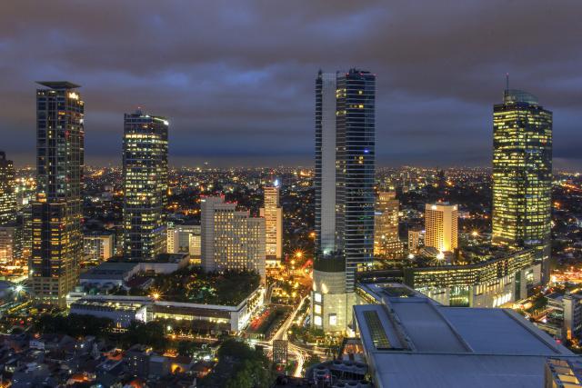 Indonesia_150Aerial view of circular flyover in Jakarta, Indonesia, at sunset time
