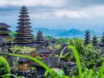Pura Besakih is a temple complex in the village of Besakih on the slopes of Mount Agung in eastern Bali, Indonesia. It is the most important, the largest and holiest temple of Hindu religion in Bali, and one of a series of Balinese temples. Perched nearly 1000 meters up the side of Gunung Agung, it is an extensive complex of 23 separate but related temples with the largest and most important being Pura Penataran Agung. The temple is built on six levels, terraced up the slope. The entrance is marked by a candi bentar (split gateway), and beyond it the Kori Agung is the gateway to the second courtyard.
