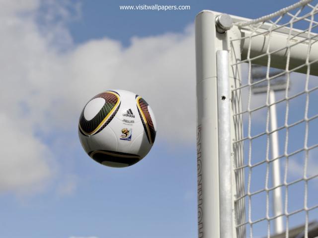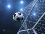 soccer_85Soccer ball in goal. Soccer ball flew into the goal. Soccer ball bends the net, against the background of flashes of light. Soccer ball in goal net on blue background. A moment of delight. 3D illustration