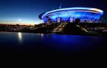 soccer_82Green soccer stadium, illuminated field, arena in night.
