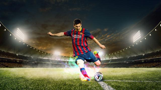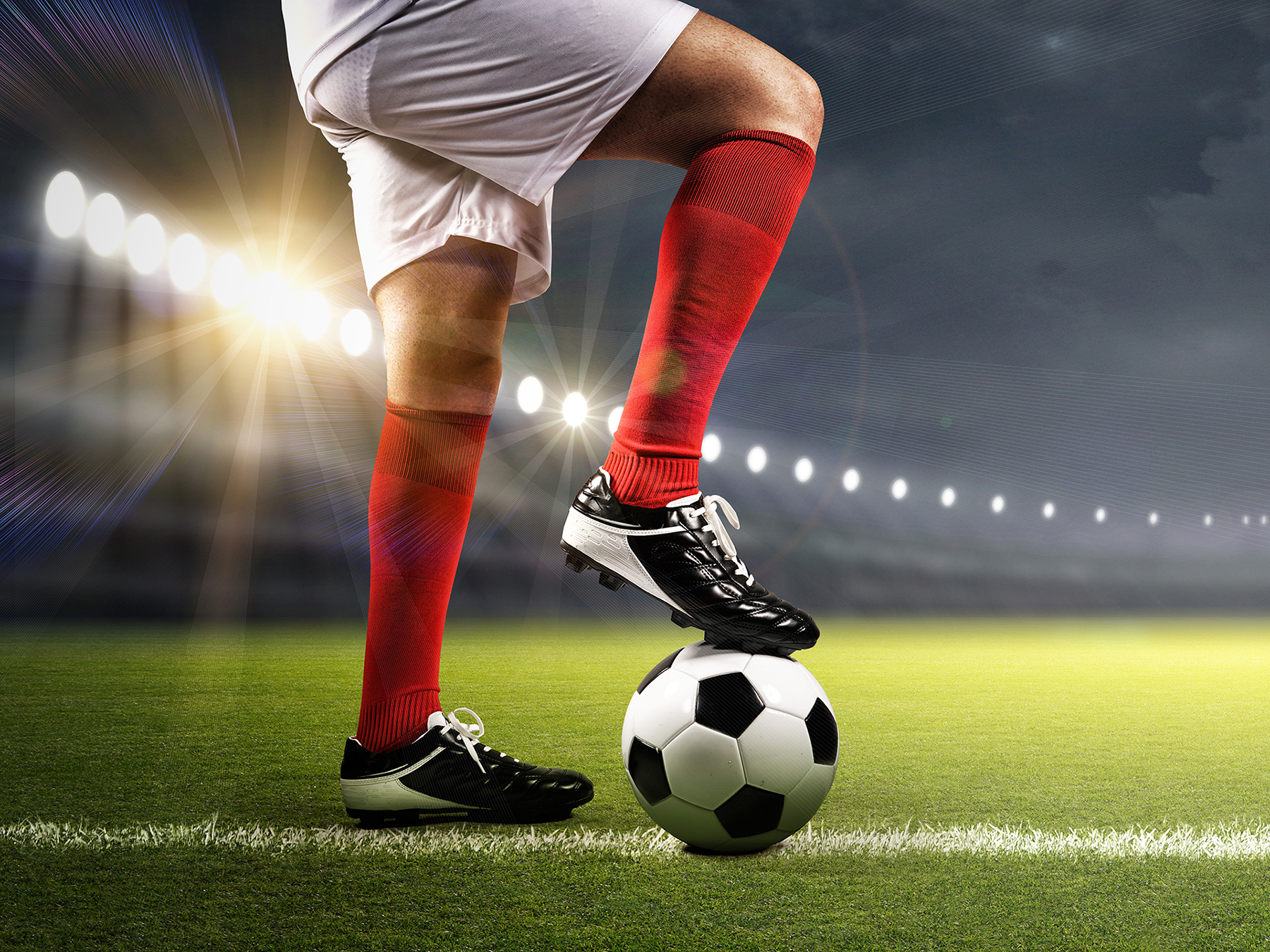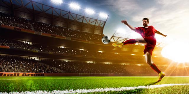 soccer_57Soccer player kicks a ball. Action. Sports event. Night soccer stadium