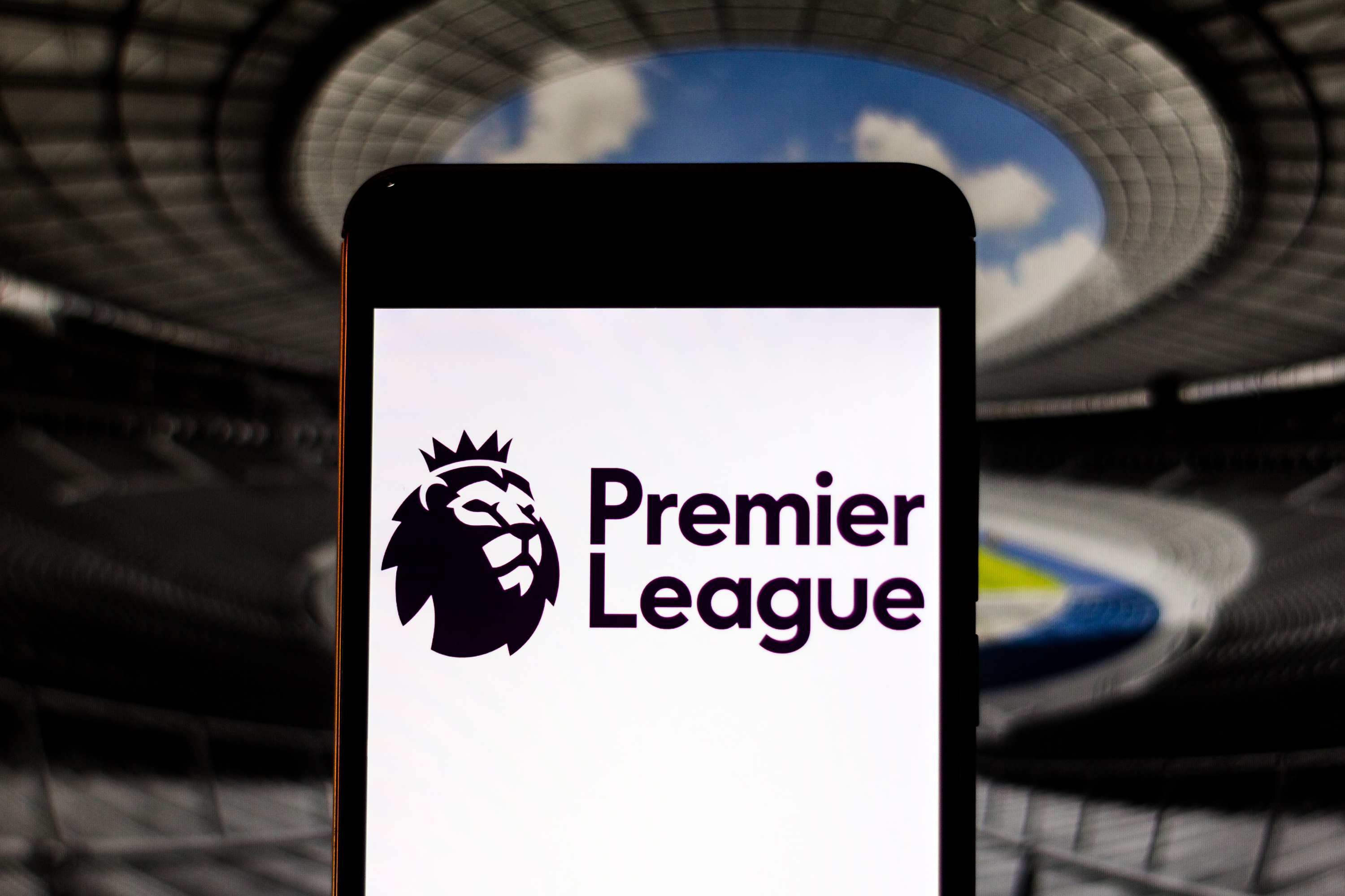 soccer_89London, UK, : Premier League flags waving in the wind. Premier League is the top level of the English football league system. The Premier League is the highest level of the English football league system. Contested by 20 clubs, it operates on a syst