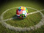 3d rendering of a soccer ball on a soccer field of the participating countries in soccer world cup.