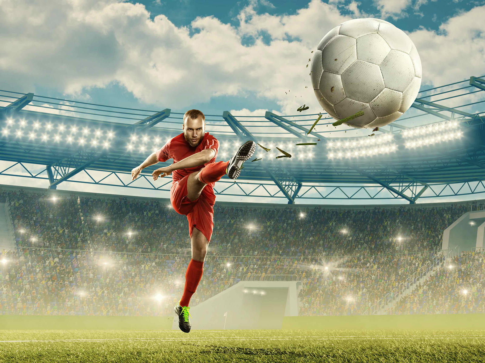 soccer_61Football player in the stadium. An imaginary stadium is modelled and rendered.