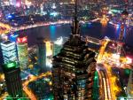 china_670 Aerial panoramic view of Shanghai skyline at night, China. Date: 8/21/2020 Aerial panoramic view of Shanghai skyline at night, China.