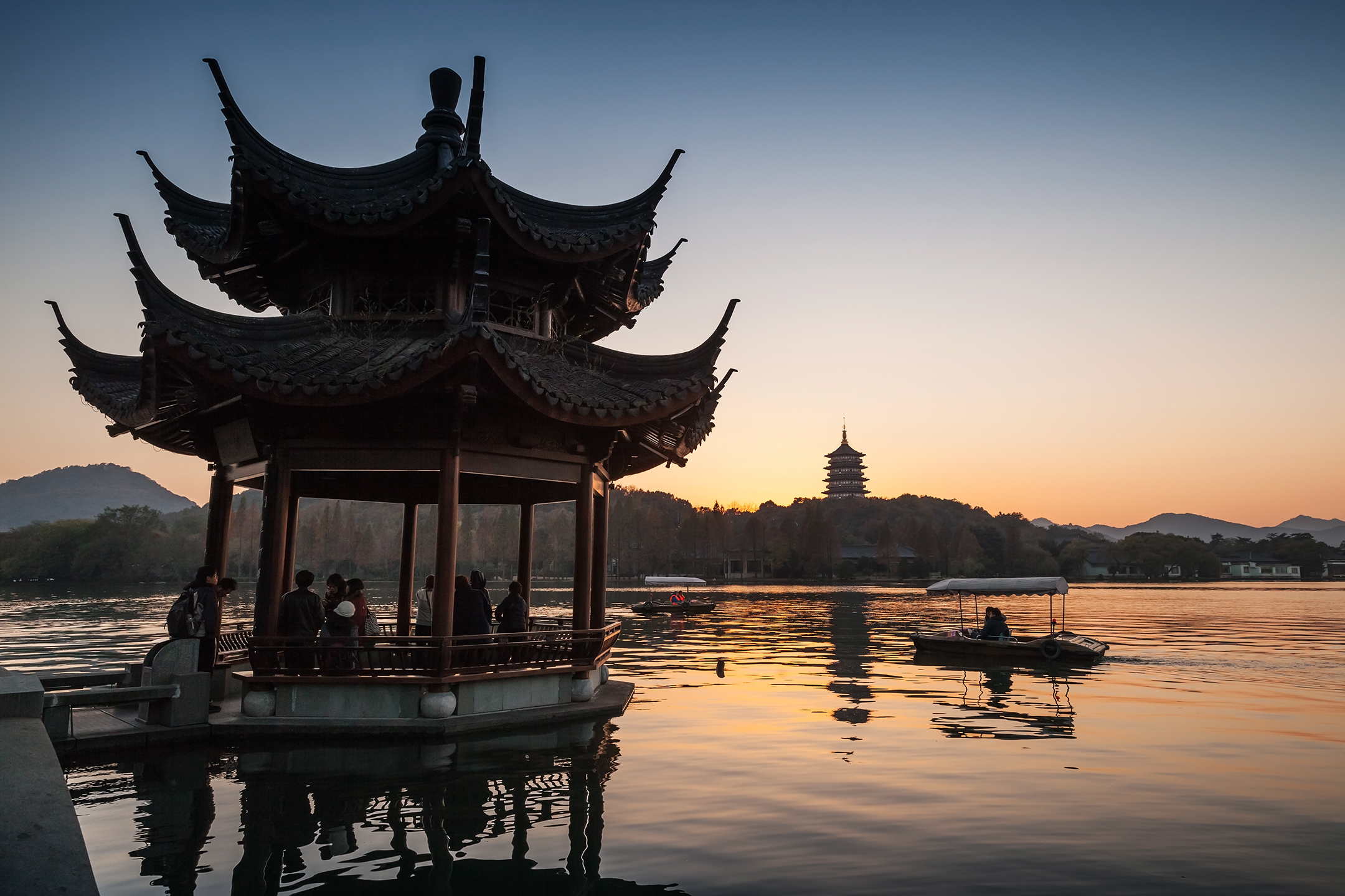 china_895 Jixian Pavilion at dusk, West Lake, Hangzhou, China Date: 3/13/2022 Jixian Pavilion at dusk, West Lake, Hangzhou, China