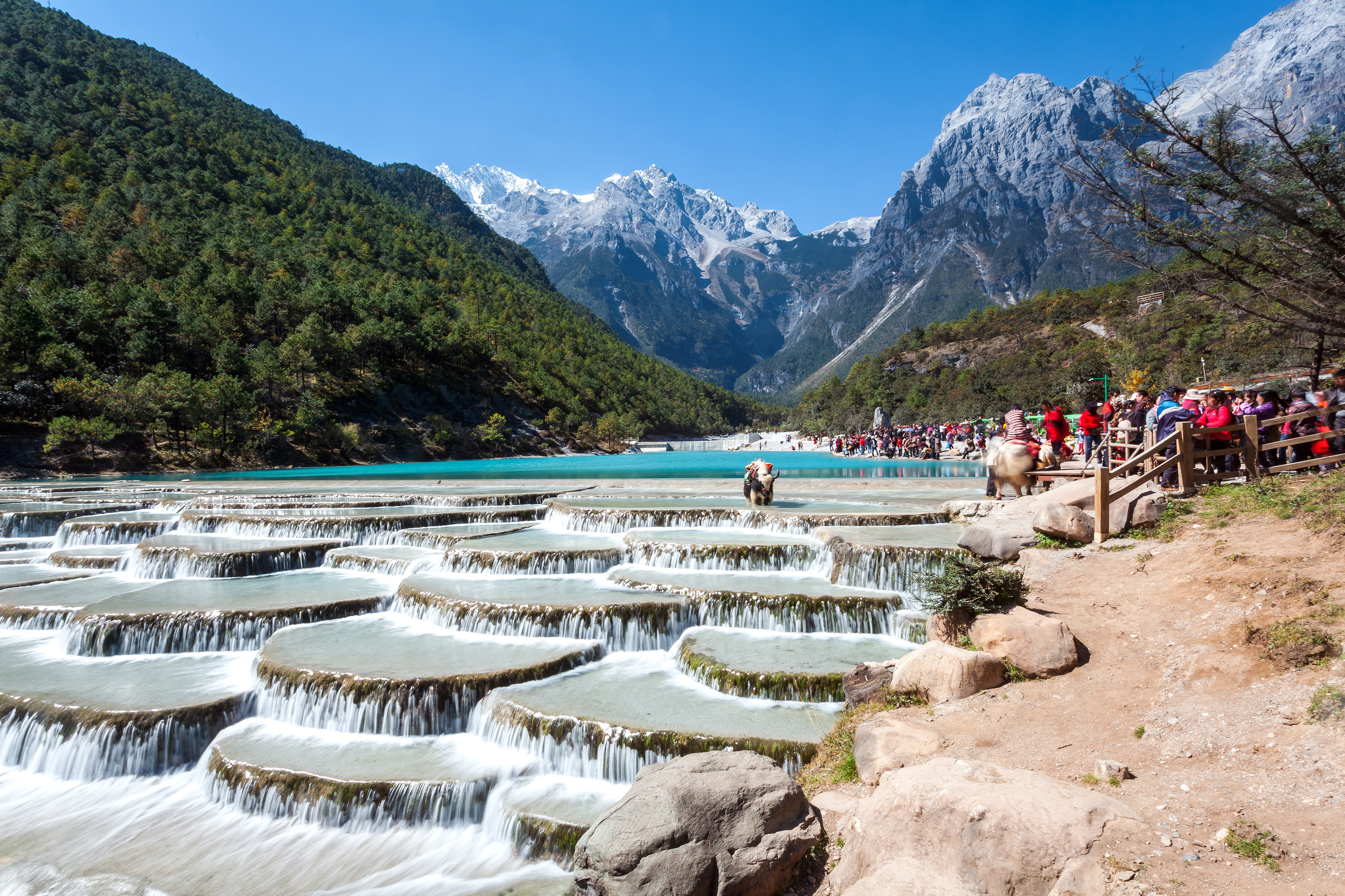 สระมังกรดำ (Black Dragon Pool) เมืองลี่เจียง (Lijiang) จุดเด่นของที่นี่คือ น้ำในสระใสราวกับมรกต และสามารถมองเห็นวิวของภูเขาหิมะมังกรหยกได้จากที่นี่อีกด้วย