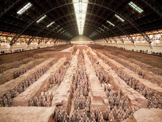 The Terracotta Army, created 2,200 years ago to protect emperor Qin Shi Huang in the afterlife, is the only known collection of military sculptures produced en masse in the world. As the country’s first emperor, Qin Shi Huang unified China. He is believed to have had an army of more than 500,000 men.