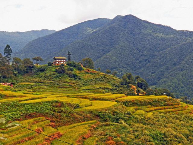 bhutan_25Scenic Bumthang Bhutan. A typical architectural structure of Bhutan.