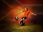 soccer_80Soccer player kicks the ball in the stadium. Goalkeeper tries to catch the ball