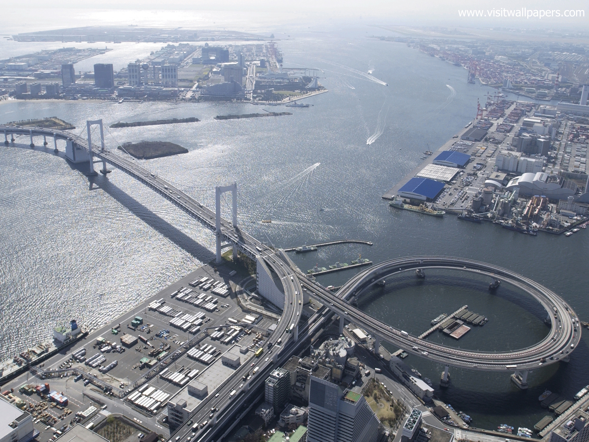 Japan_121 Aerial View of Rainbow Bridge, Tokyo, Japan Date: 8/5/2017 Aerial View of Rainbow Bridge, Tokyo, Japan