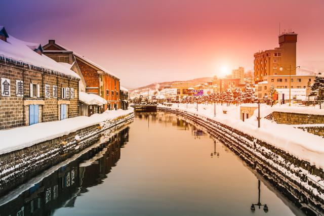 Japan_194 Scene of Otaru canal in the winter evening, Hokkaido, Japan Date: 10/21/2020 Scene of Otaru canal in the winter evening, Hokkaido, Japan