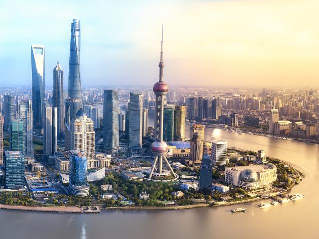china_805Shanghai Skylines, Shanghai, China. Aerial view of Jin Mao Tower, Shanghai tower, Shanghai World Financial Center and Oriental Pearl Tower