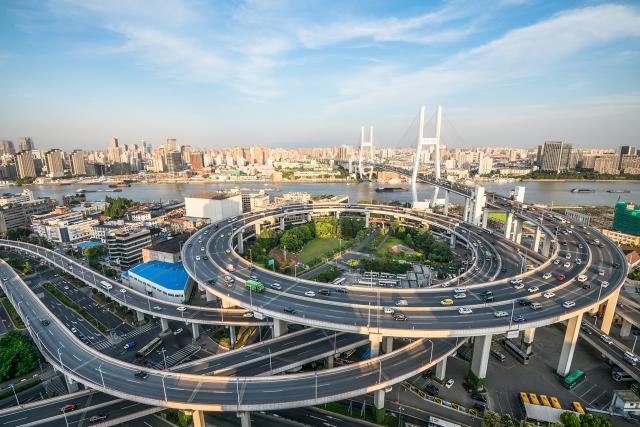 The Nanpu Bridge in Shanghai, China, sister bridge to the Yangpu Bridge, is one of the main bridges in Shanghai.