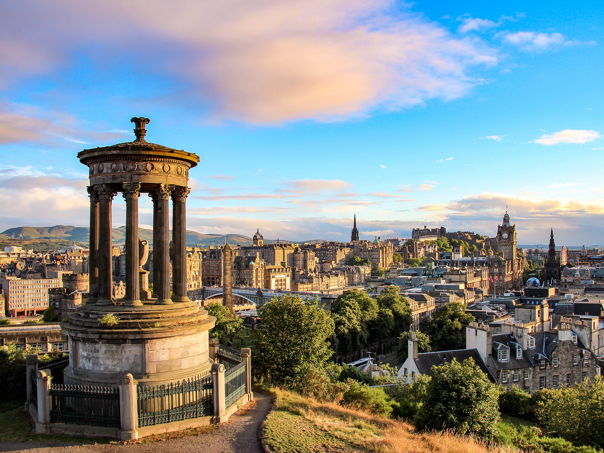 Beautiful view of Stewart Monument, Calton Hill, Edinburgh, Scotland
