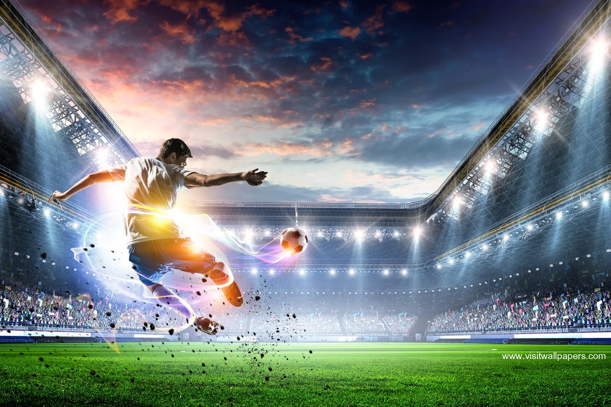 soccer_57Soccer player kicks a ball. Action. Sports event. Night soccer stadium