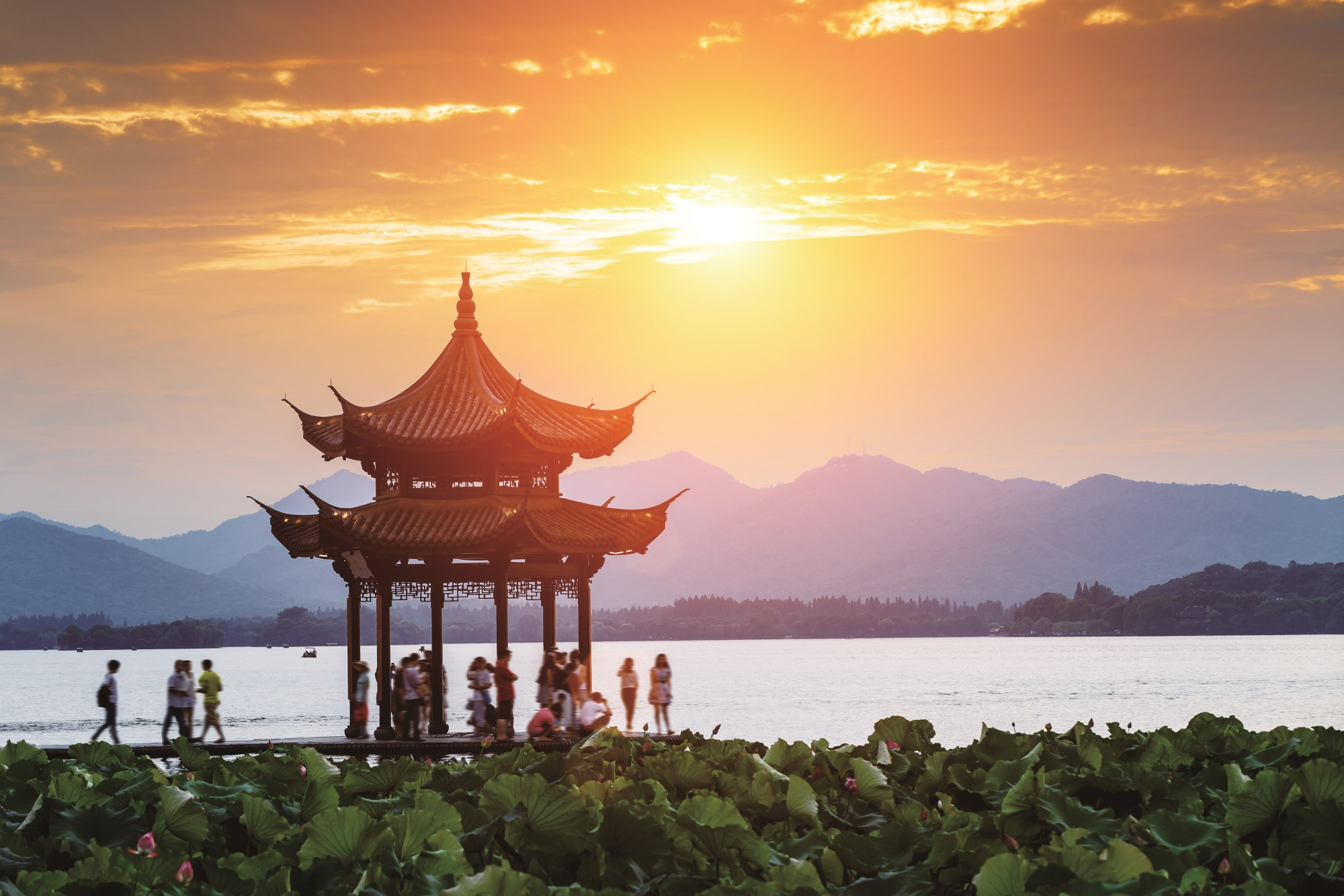 china_895Jixian Pavilion at dusk, West Lake, Hangzhou, China