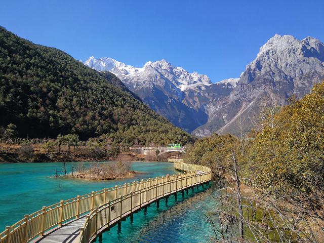 Jade dragon snow mountain and blue moon valley, Lijiang, Yunnan, China.
