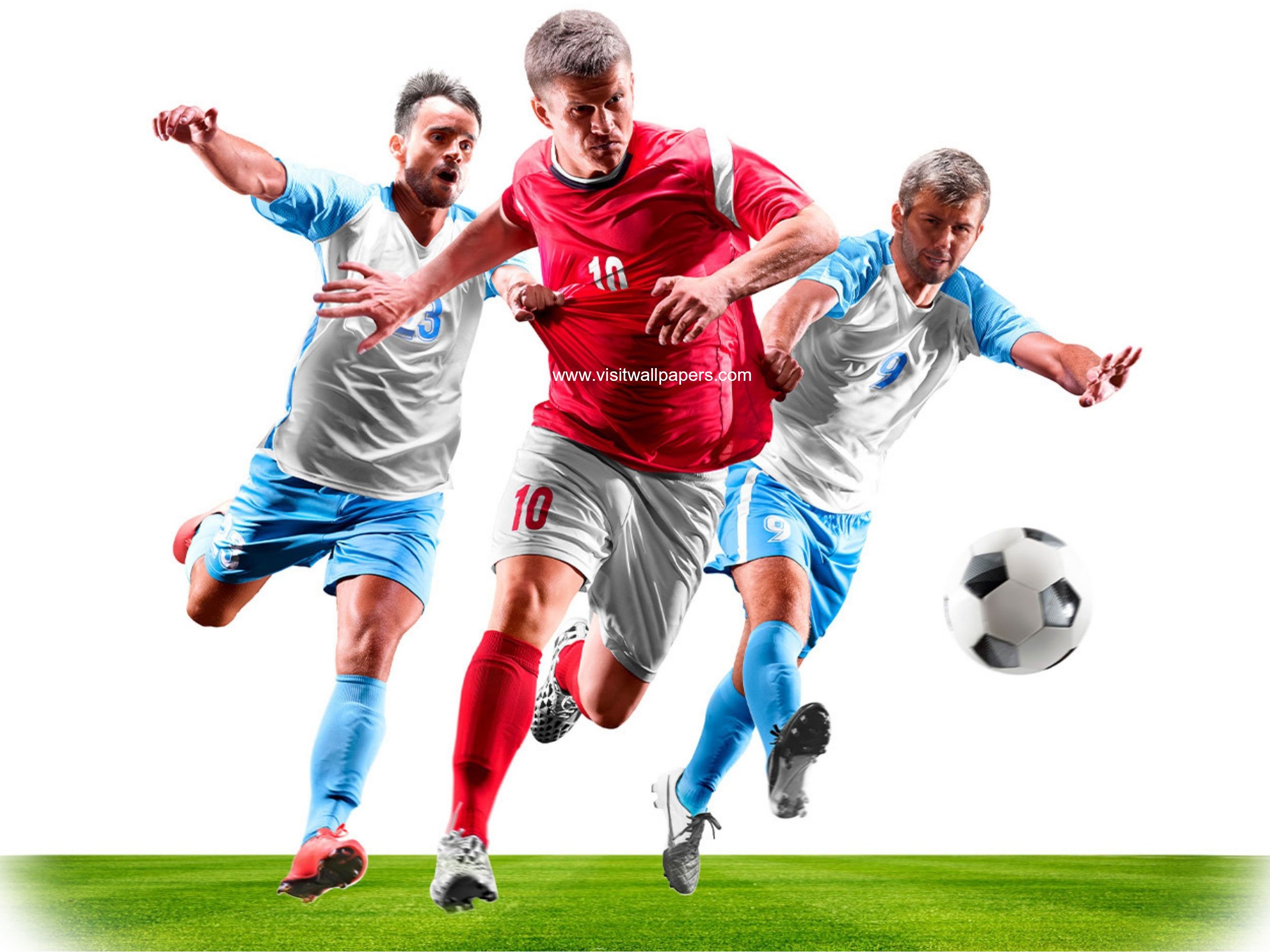 soccer_69Three soccer players fight for a ball. Tough competition. Slide tackle. Soccer stadium (3D render)