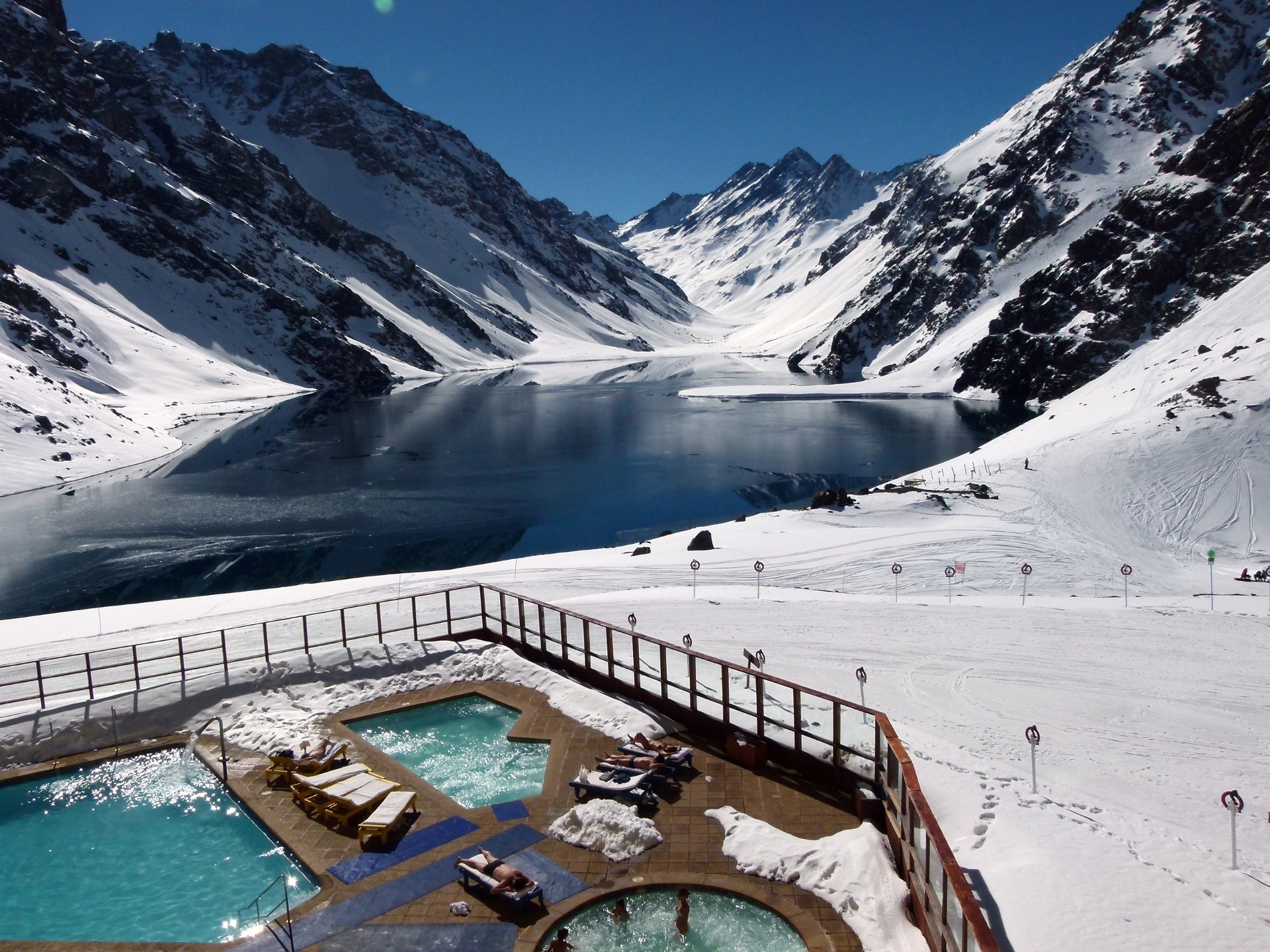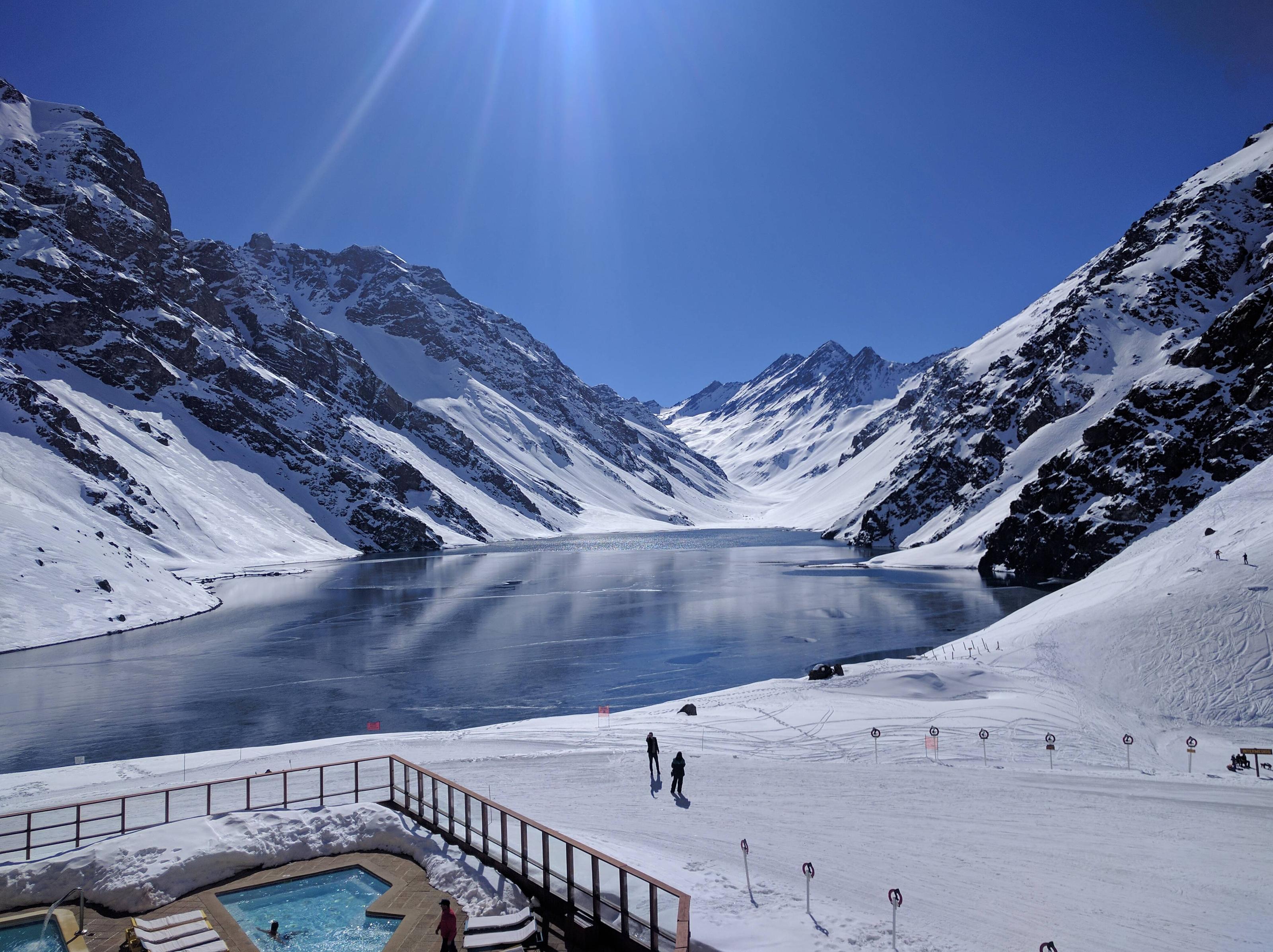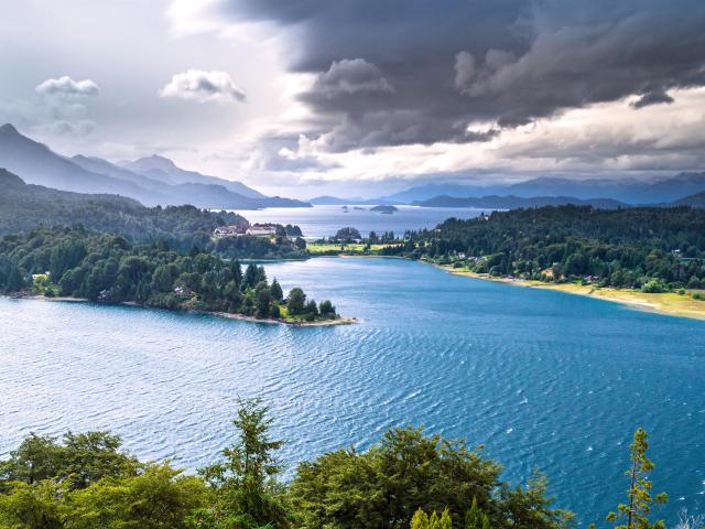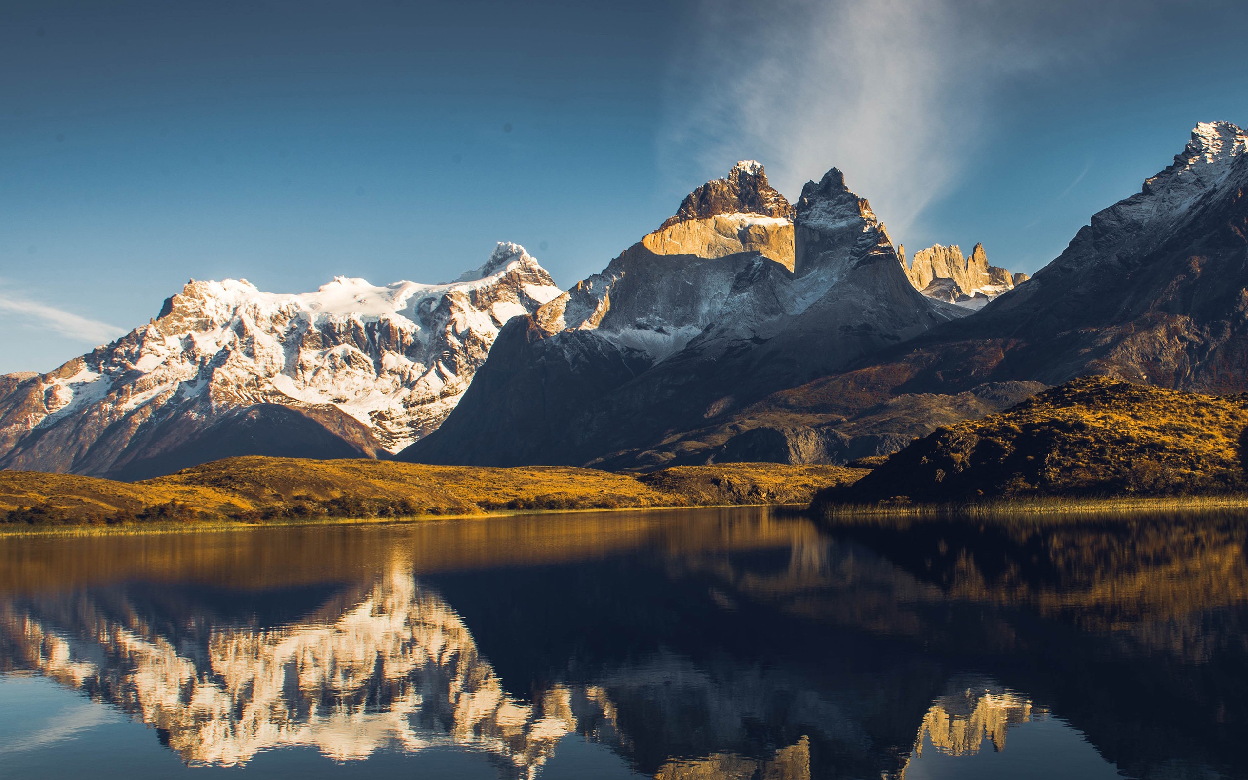 south_america_281National Park Torres del Paine, Chile. Azure Lake Pehoe at the foot of the magnificent snow-covered cliffs of Los Kuernos