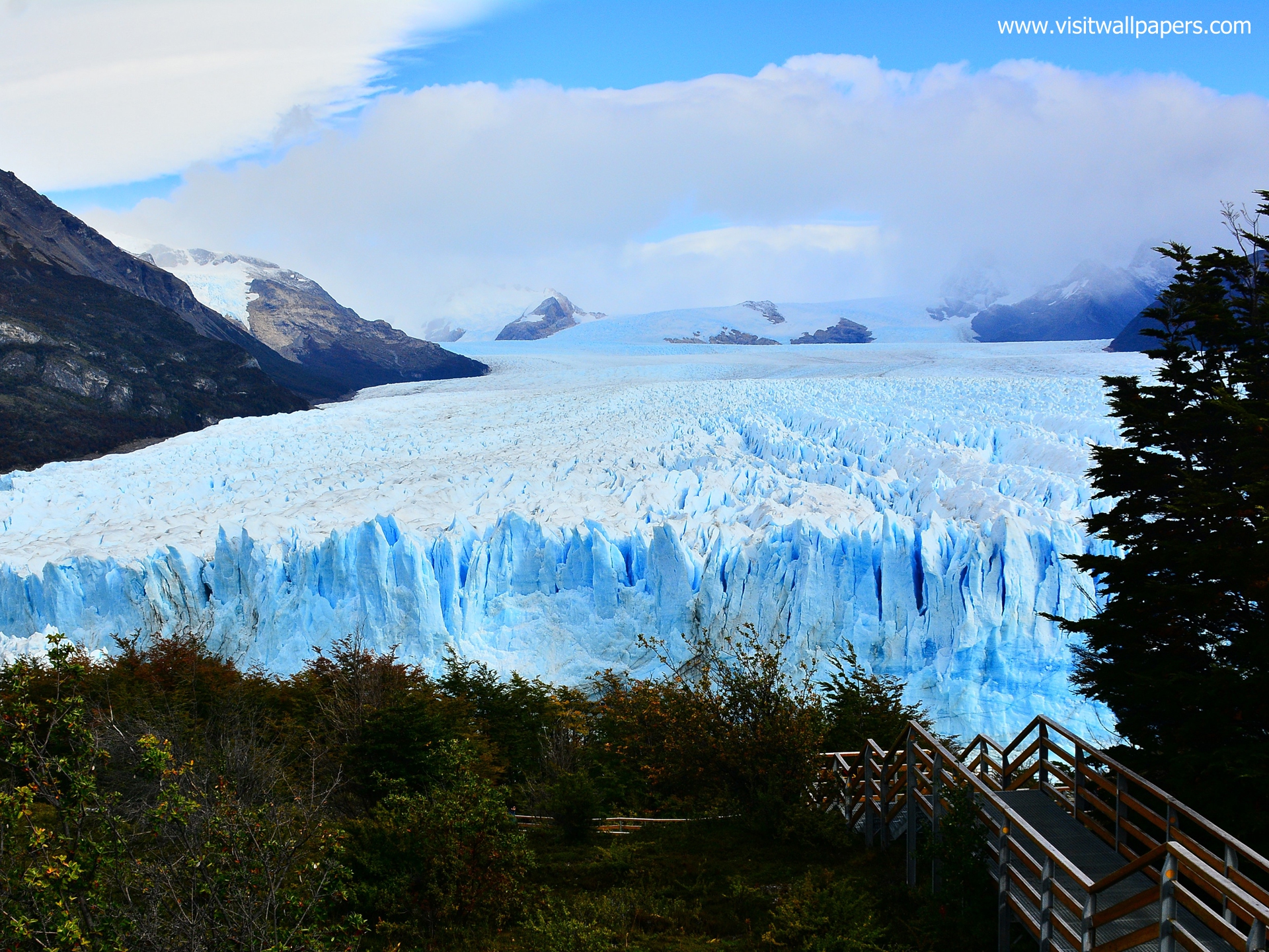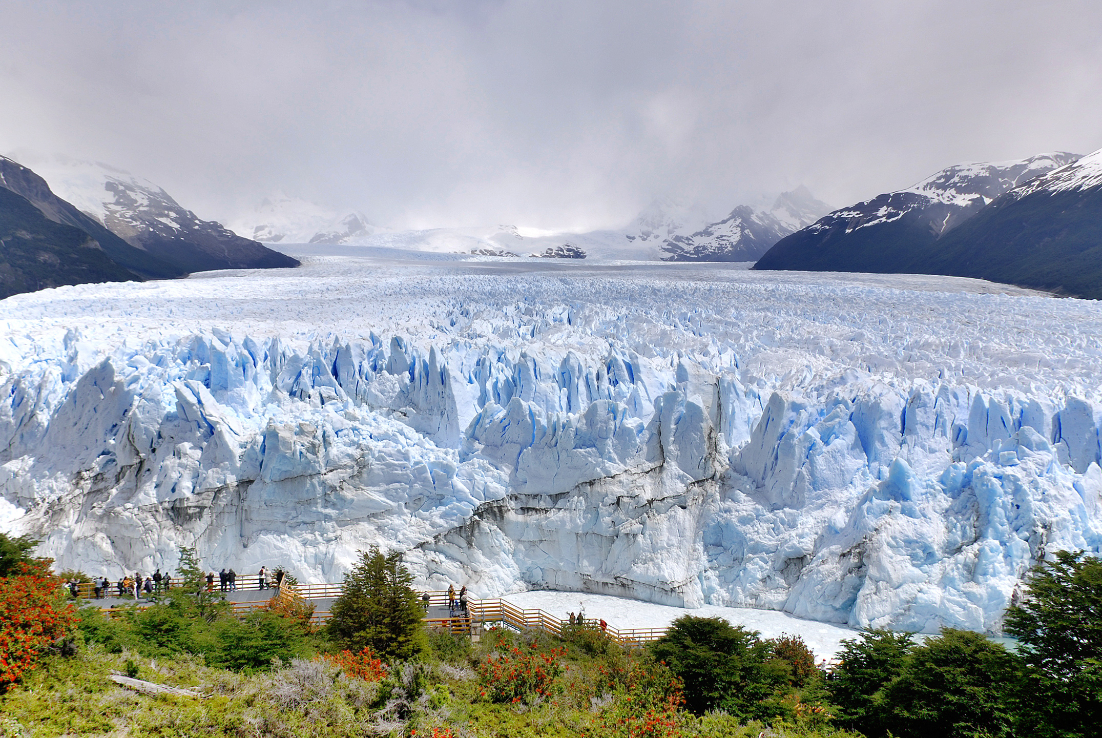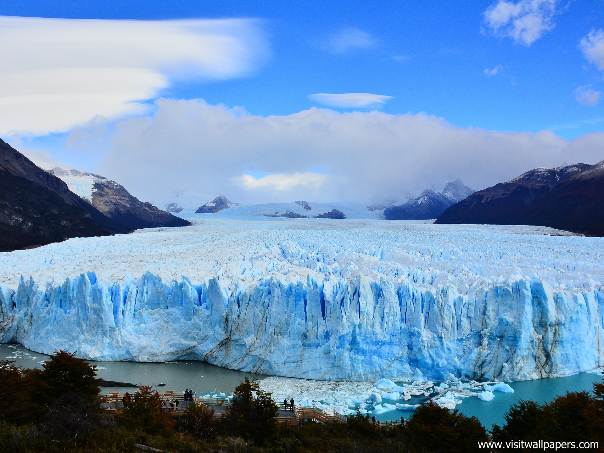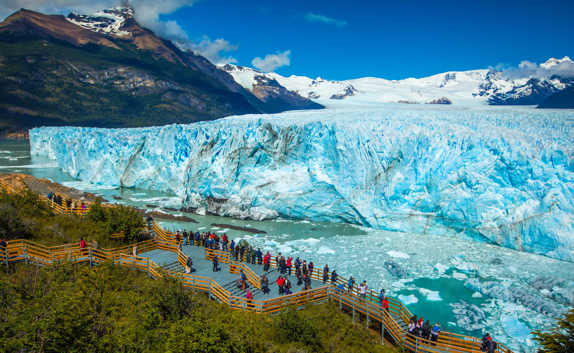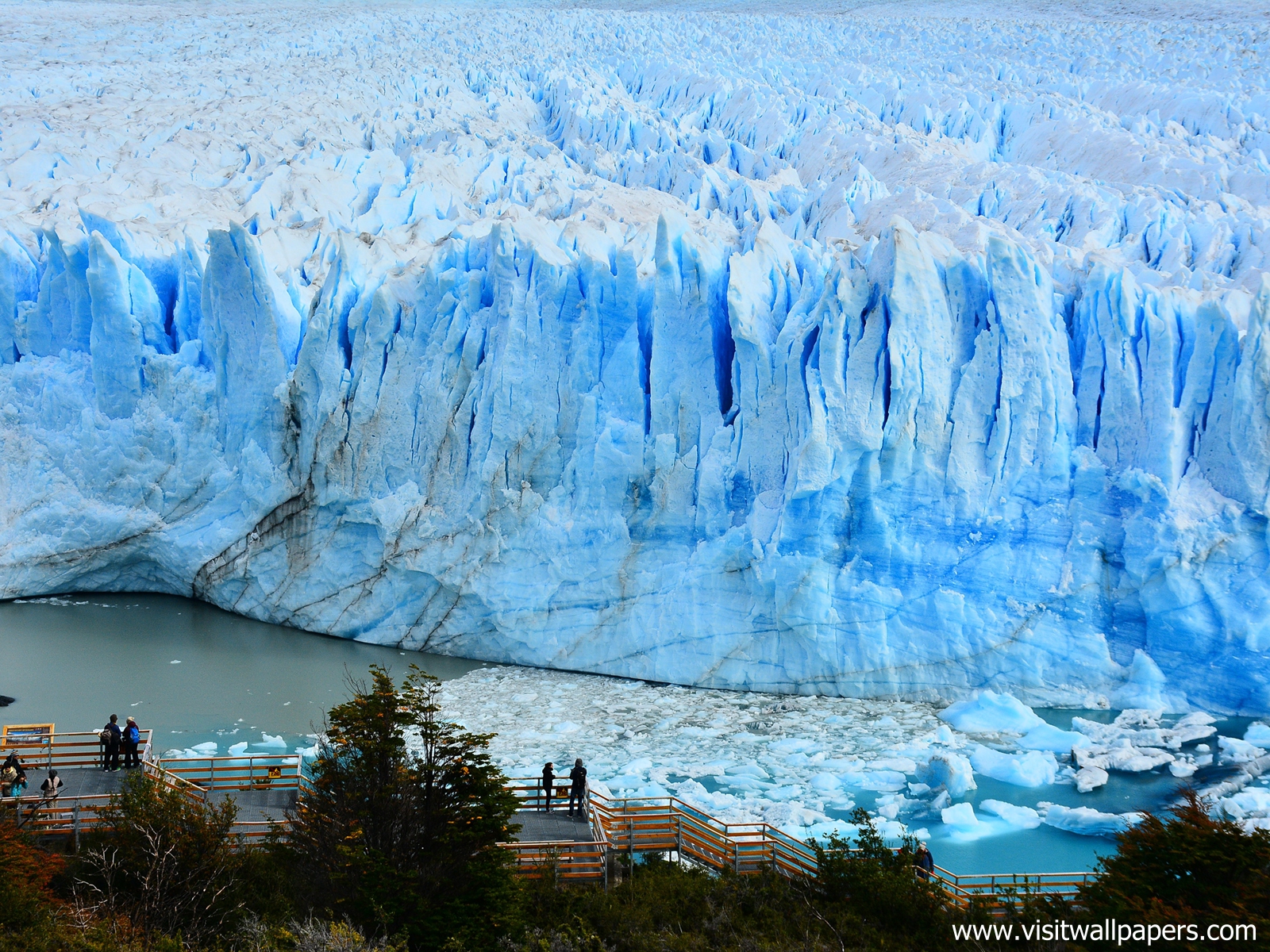 Due to its size and accessibility, Perito Moreno is one of the major tourist attractions in southern Patagonia. It is less than two hours by bus from El Calafate, and many tour companies run daily visits. A large visitor centre at the site features a walking circuit which allows visitors to view the southern flank and the east facing edge of the glacier.