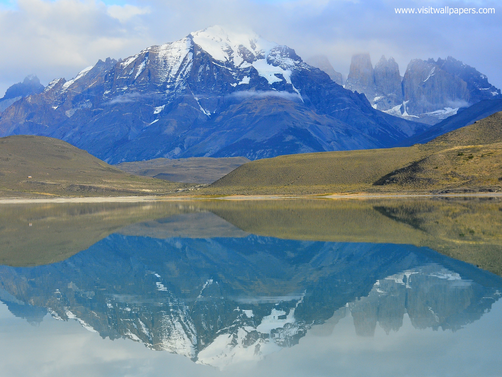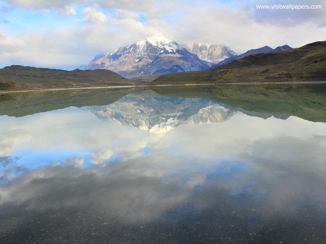 south_america_258Majestic mountain landscape. Reflection of mountains in the lake. National Park Torres del Paine, Chile.