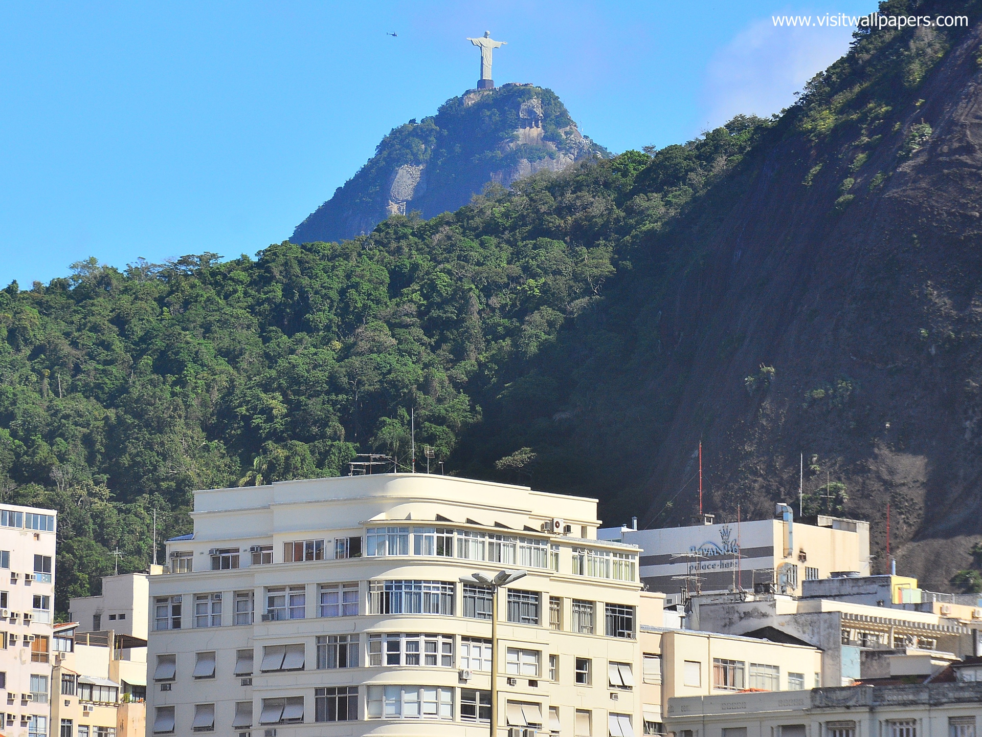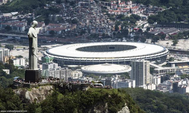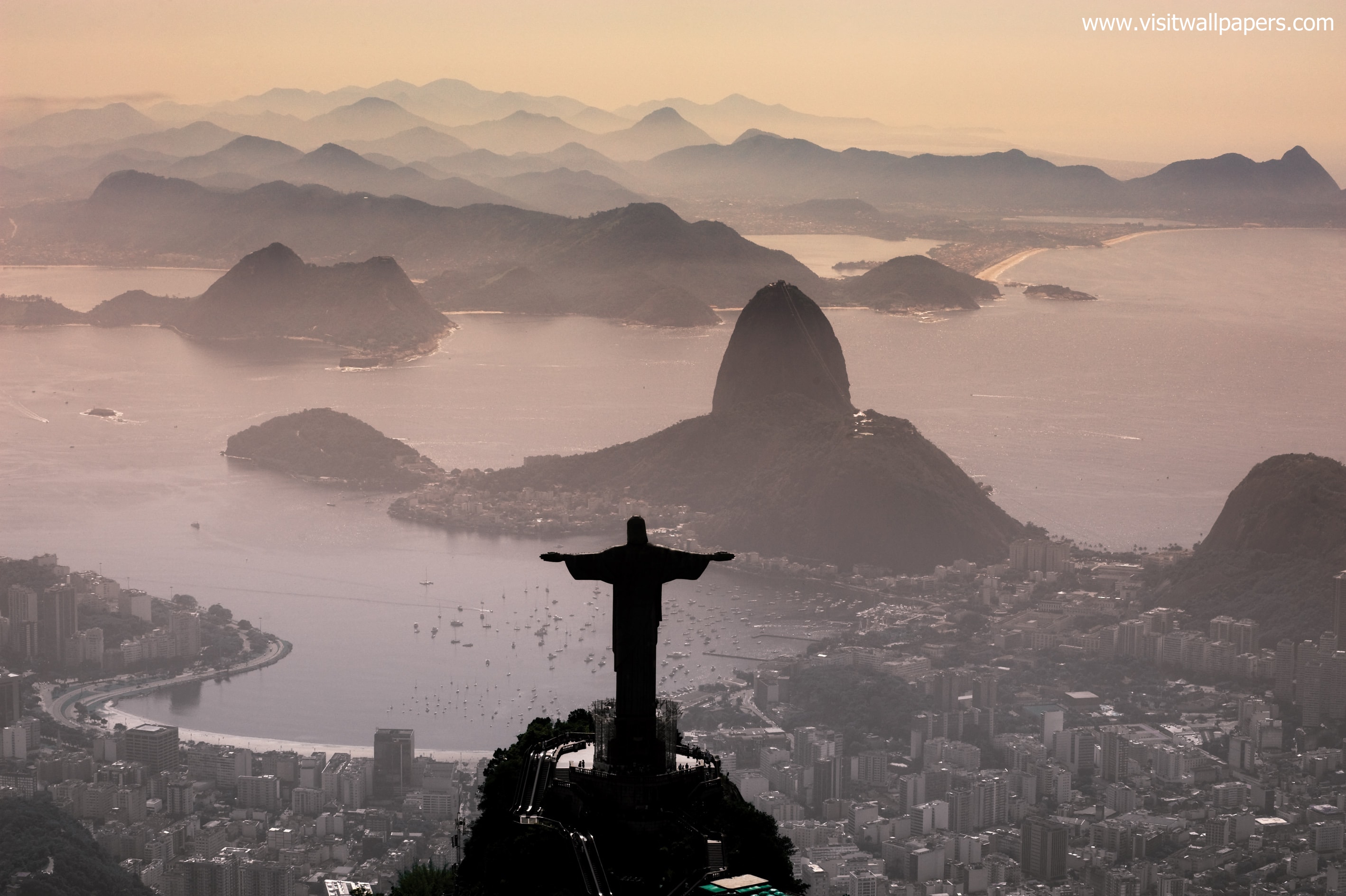 Aerial view of rio de janeiro with the christ redeemer with the city at background.