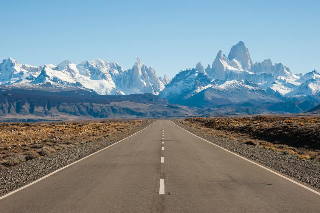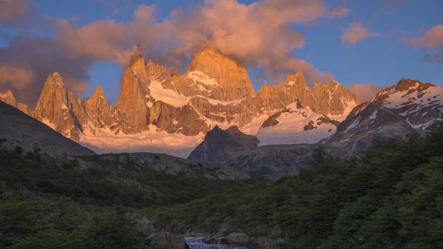 Fitz Roy mountain near El Chalten, in the Southern Patagonia, on the border between Argentina and Chile. Sunset view from track