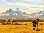 south_america_295Alpaca (Vigugna pacos) graze in a wetland, known as bofedal in Spanish, at the base of the snow capped 6324 meter high Parinacota volcano in the Altiplano, northern Chile.