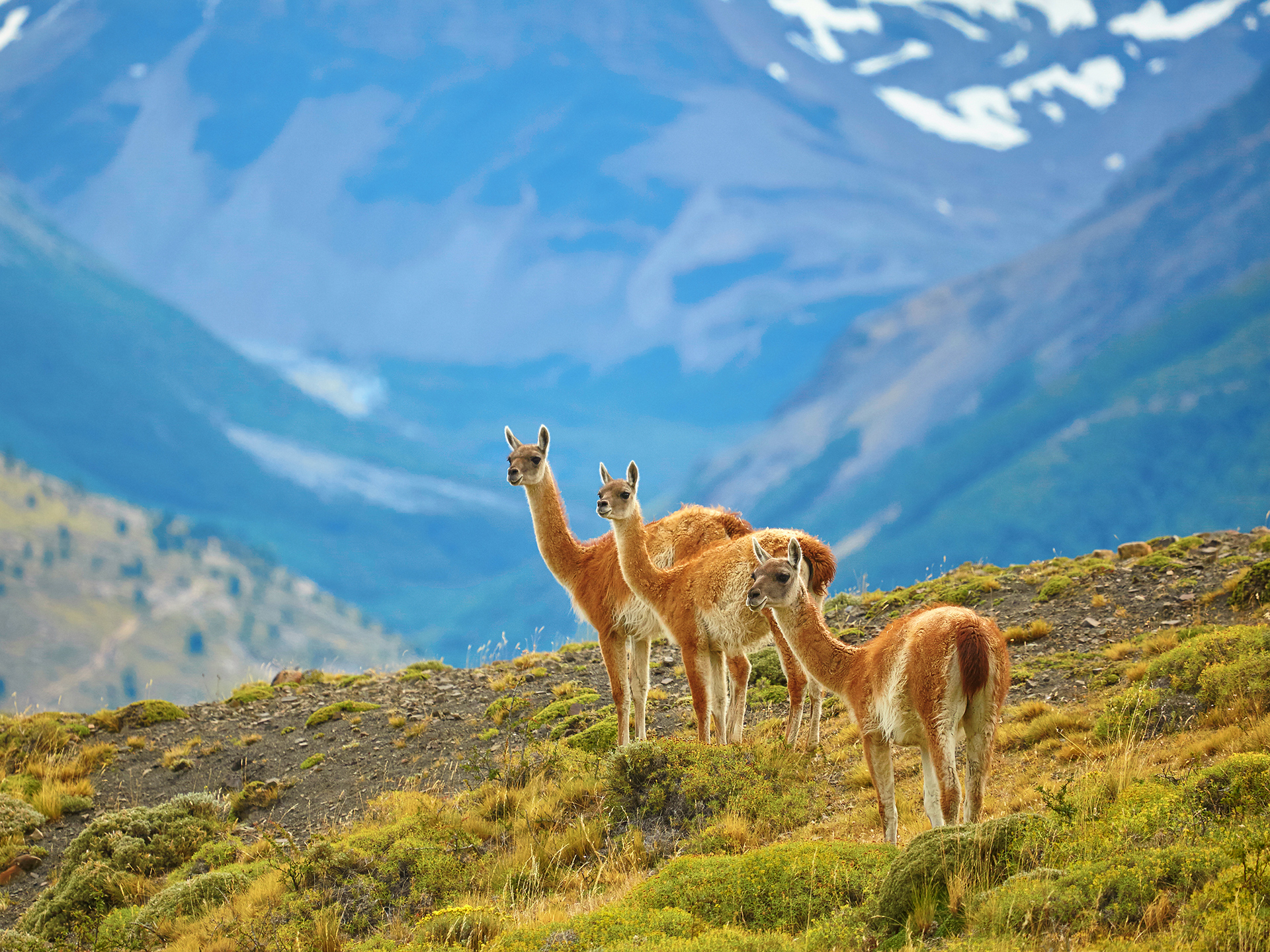 south_america_163Three guanacoes in Torres del Paine national park, Patagonia, Chile
