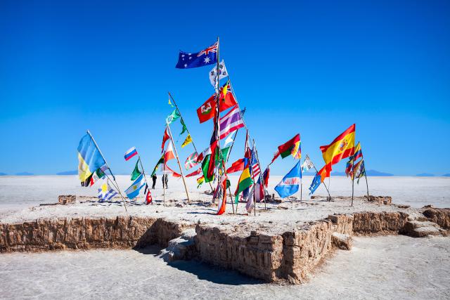 south_america_297Salar de Uyuni, Bolivia, the world's largest salt department in Bolivia, photographed at the golden hour.The Uyuni salt flat is the largest continuous and high salt desert in the world, with an area of 10,582 km², located at 3650 meters in the south