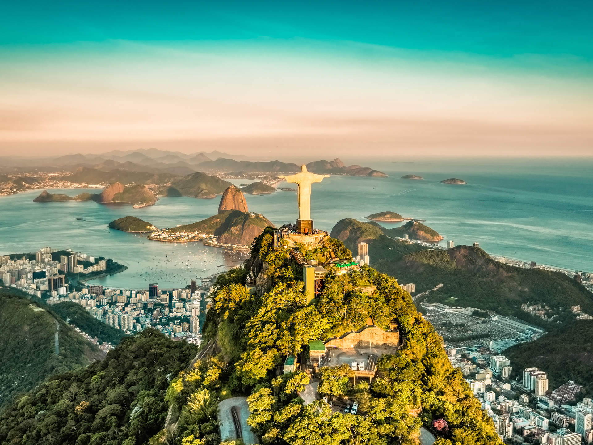 Aerial view of Christ the Redeemer and Rio de Janeiro city
