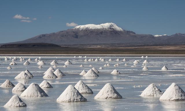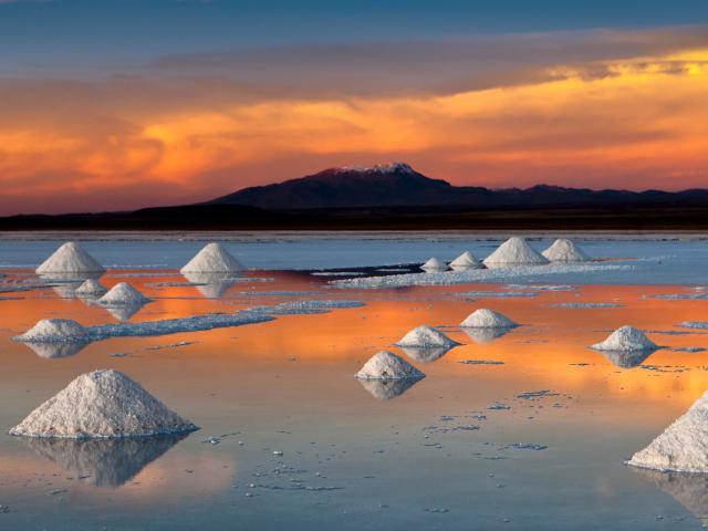 Salar de Uyuni, Bolivia, the world's largest salt department in Bolivia, photographed at the golden hour.