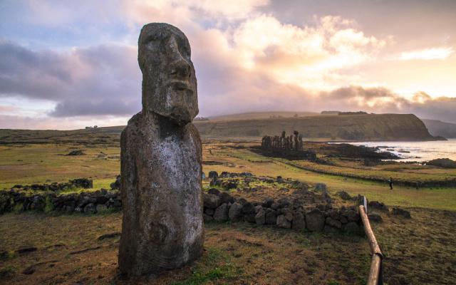 This photo was taken at Ahu Tahai, easter island (rapa nui), chile. Rapa Nui’s mysterious moai statues stand in silence but speak volumes about the achievements of their creators. The stone blocks, carved into head-and-torso figures, average 13 feet (4 meters) tall and 14 tons. The effort to construct these monuments and move them around the island must have been considerable—but no one knows exactly why the Rapa Nui people undertook such a task. Most scholars suspect that the moai were created to honor ancestors, chiefs, or other important personages, However, no written and little oral history exists on the island, so it’s impossible to be certain.