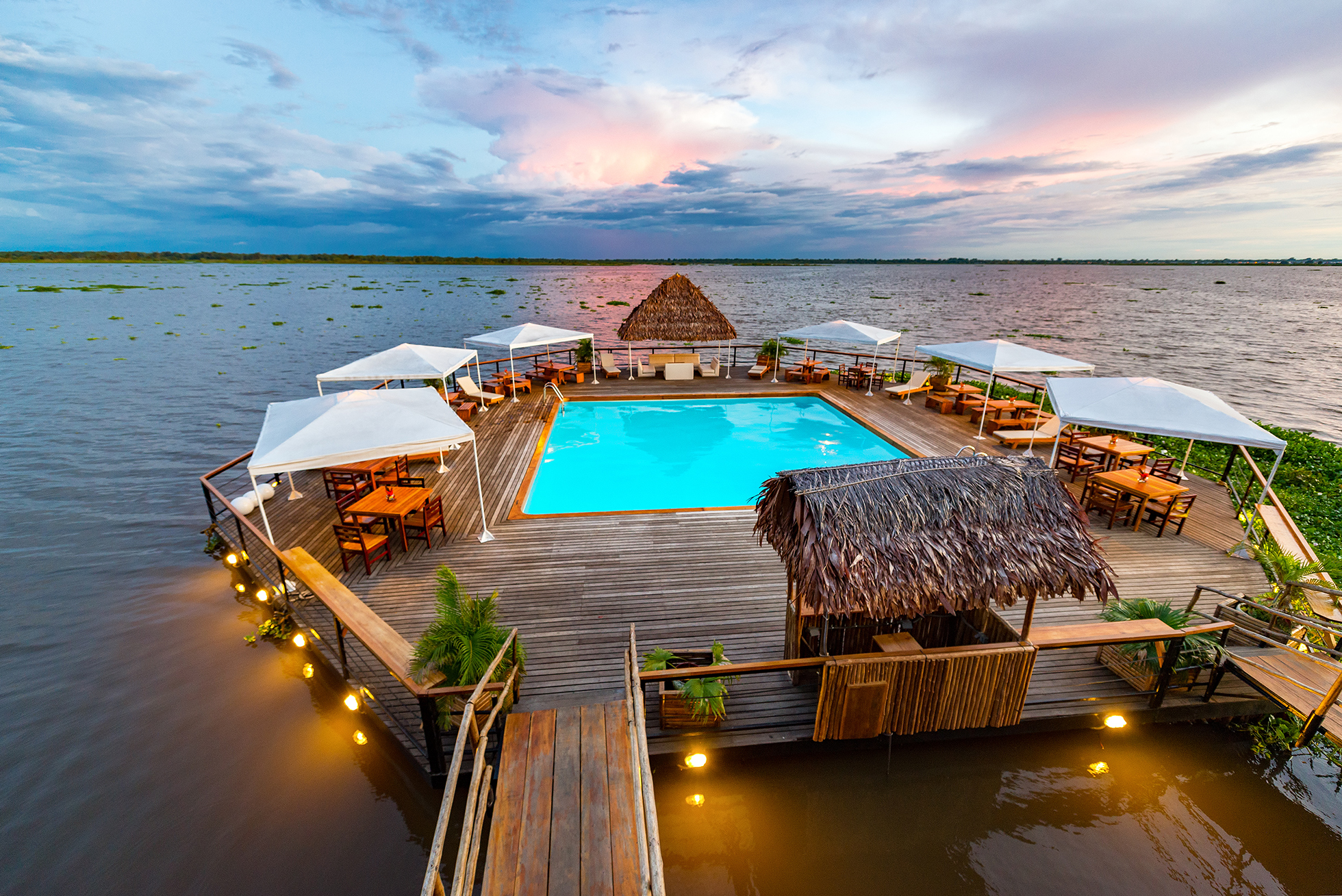 Pool floating in the Amazon river in Iquitos, Peru