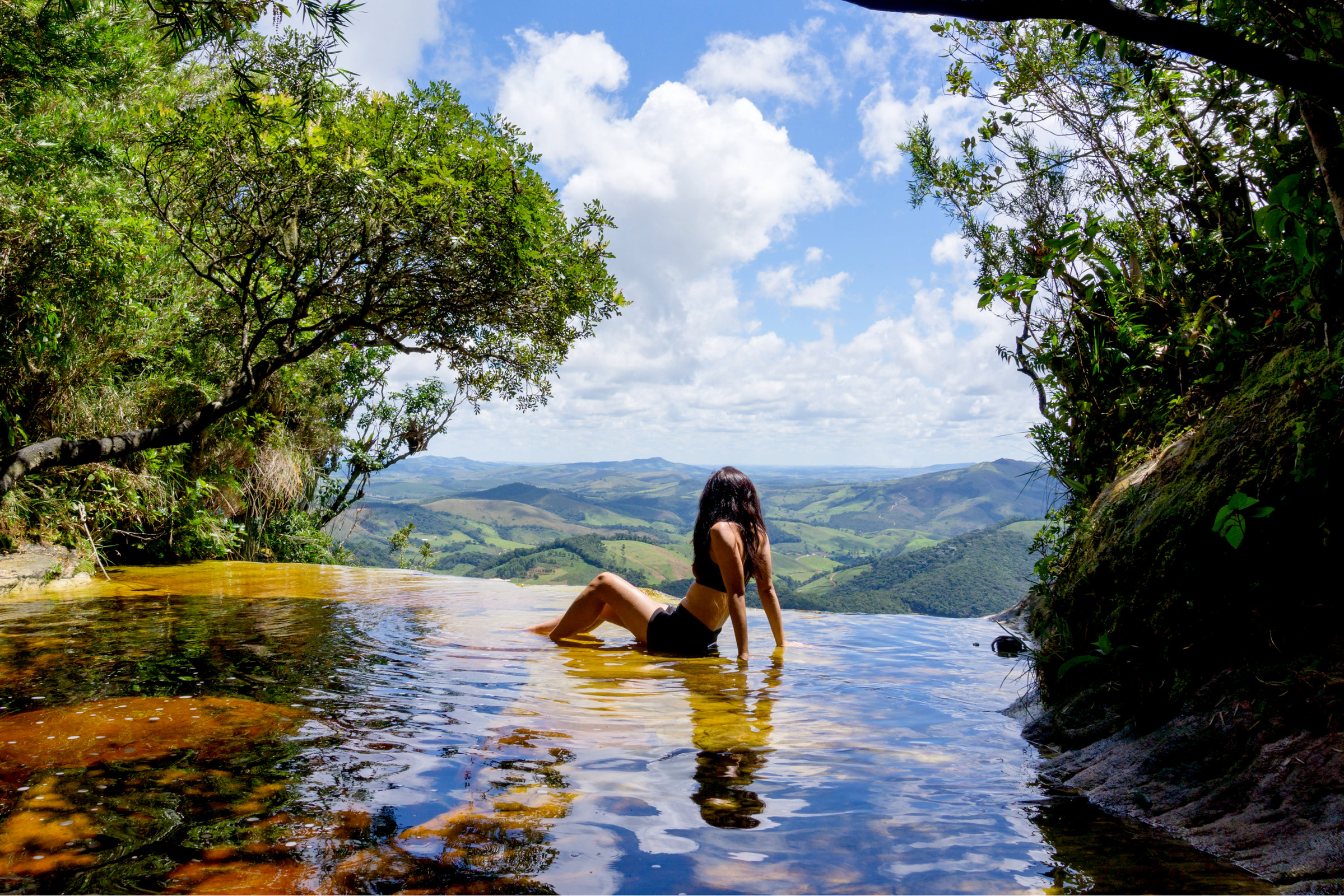 south_america_257Woman sitting on the top of Janela do Ceu Waterfall in Parque Estadual do Ibitipoca (Ibitipoca State Park), Minas Gerais, Brazil