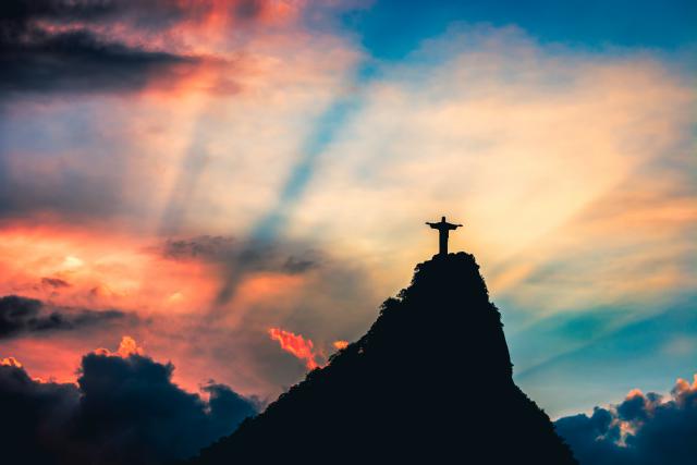 Christ the Redeemer, Cristo redentor at sunset, in Rio de Janeiro - Brazil