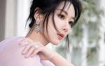 shanghai, china- September 12, 2020: chinese famous actress Yang mi wears pink shirt posing.
