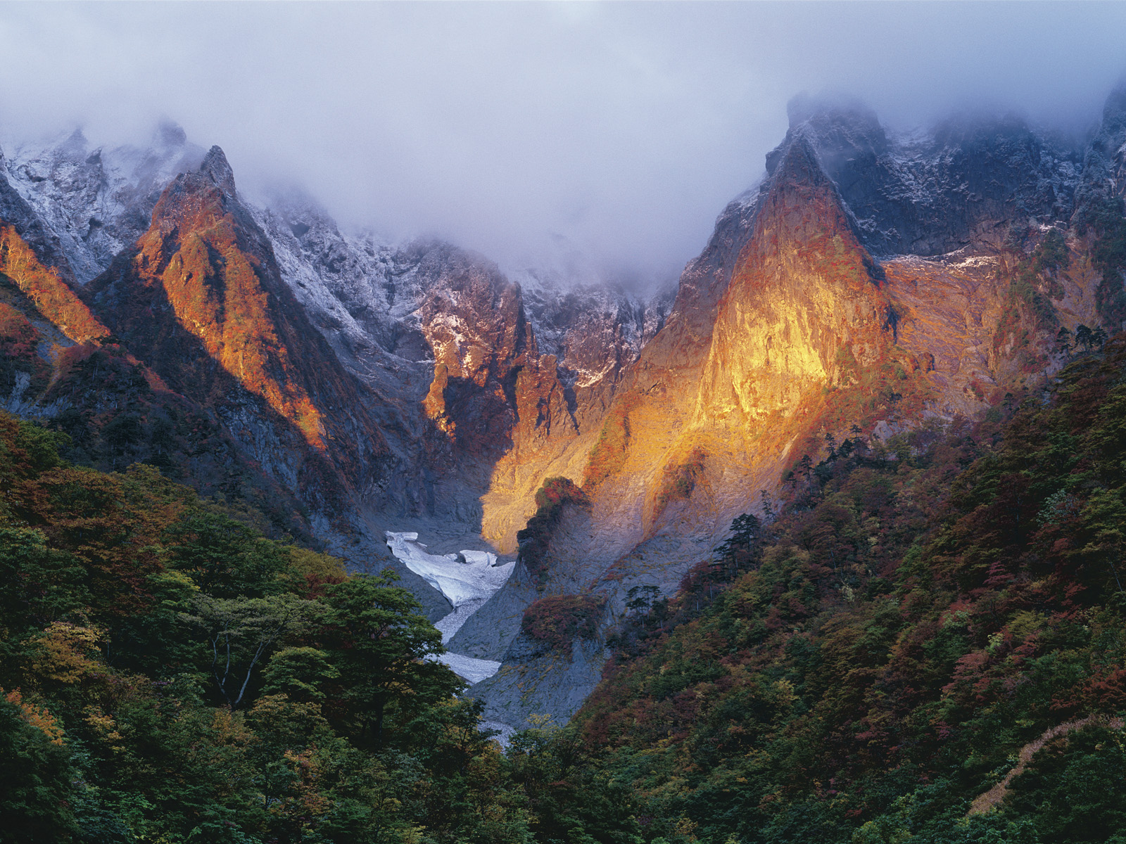 Japan's tallest mountain (12,388 feet high) towers over the nearby countryside, which is often enveloped in a thick layer of fog. Fuji is an active volcano, last erupting in 1707.