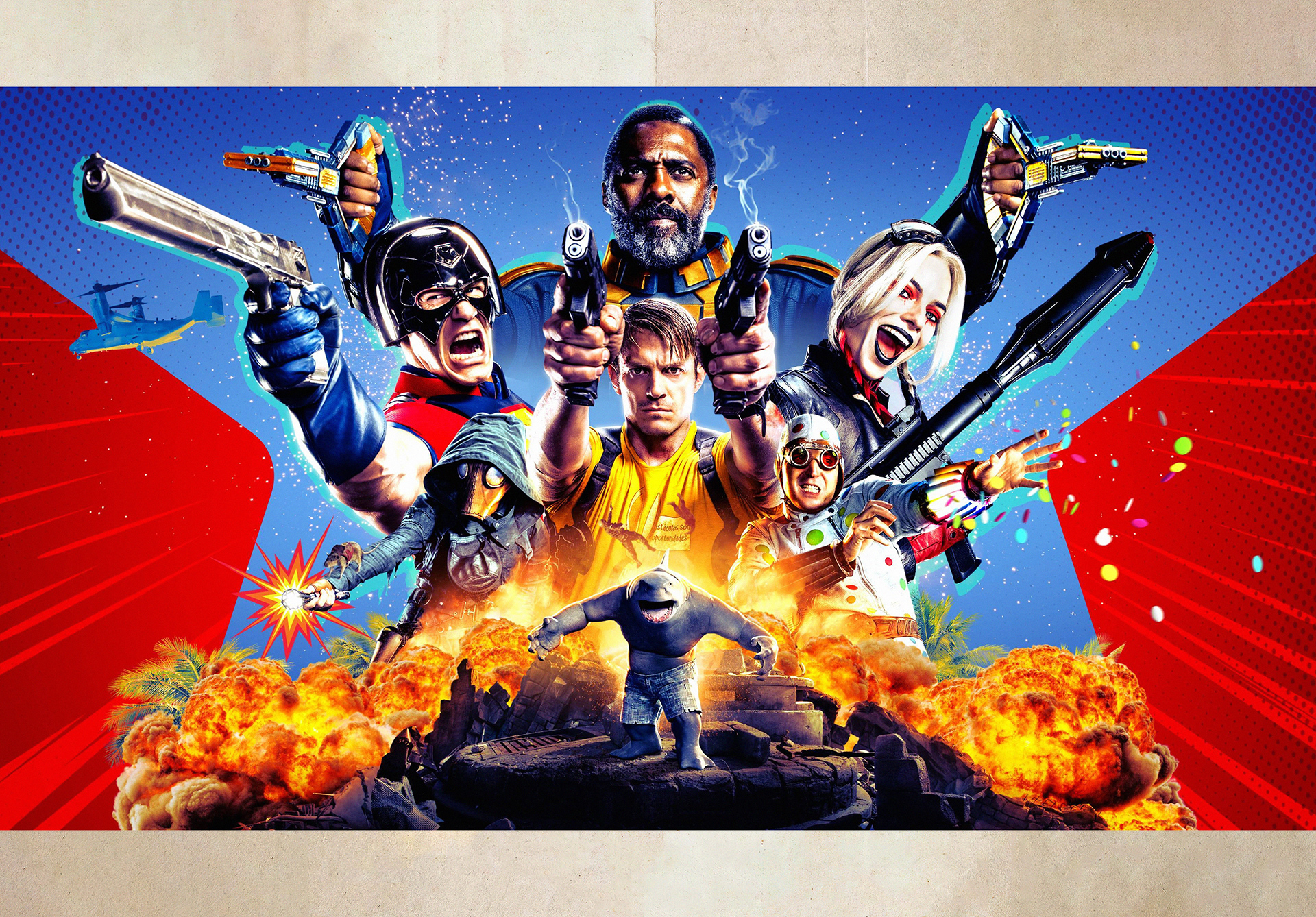 The Suicide Squad is a 2021 American superhero film based on DC Comics featuring the team Suicide Squad. Produced by DC Films, Atlas Entertainment, and The Safran Company, and distributed by Warner Bros. Pictures, it is a standalone sequel to Suicide Squad (2016) and the tenth film in the DC Extended Universe (DCEU). It was written and directed by James Gunn and stars an ensemble cast including Margot Robbie, Idris Elba, John Cena, Joel Kinnaman, Sylvester Stallone, Viola Davis, David Dastmalchian, Daniela Melchior, Michael Rooker, Jai Courtney, Peter Capaldi, Alice Braga, and Pete Davidson. In the film, a task force of convicts known as the Suicide Squad are sent to the island nation of Corto Maltese to destroy evidence of the giant alien starfish Starro the Conqueror.