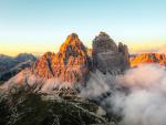 mountains_368Three Peaks of Lavaredo at sunset, Italy The Tre Cime di Lavaredo ("Three Peaks of Lavaredo"), also called the Drei Zinnen, are three distinctive battlement-like peaks, in the Sexten Dolomites of northeastern Italy. They are probab